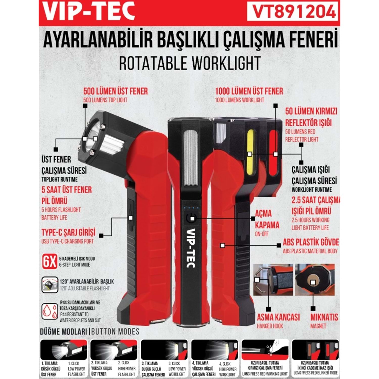 EL FENERI VIP-TEC BASLIKLI AYARLANABILIR ÇALISMA VT891204